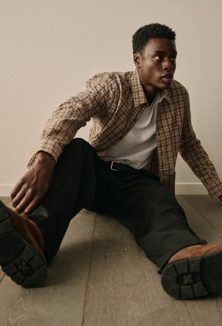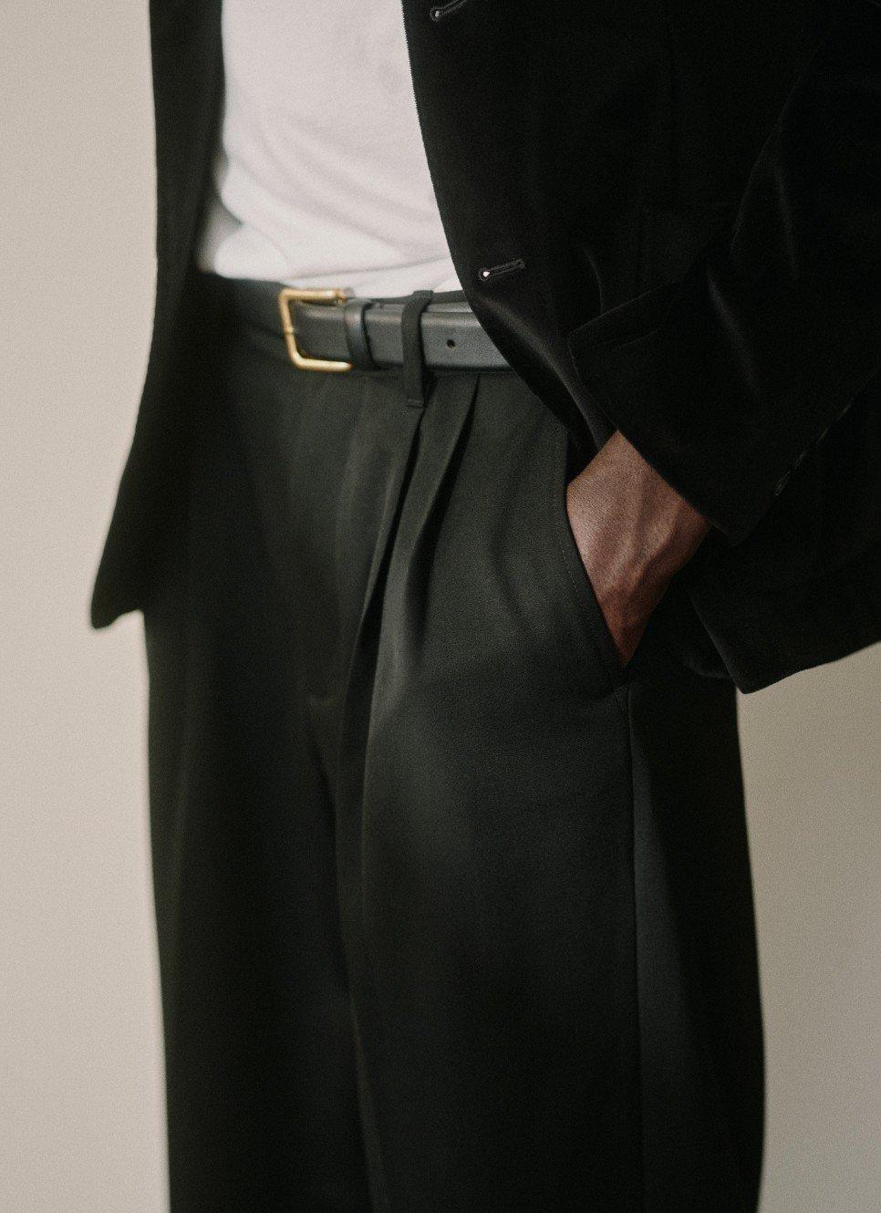 Endlessly wearable neutrals permeate this new lineup — warm, rich browns are complemented by cooler sycamore greens, charcoals and coastal blues. Here and there you'll spy them intermingling in the hazy space-dyed stripes of a merino wool sweater. We remain non-traditional in our suiting for ultimate transitionality; our latest wool trouser — double pleated for a sharp finish and discreet comfort — has become a foundational staple for this season, effortlessly shifting from dressy to casual when paired with one of our chore jackets or cabana shirts.